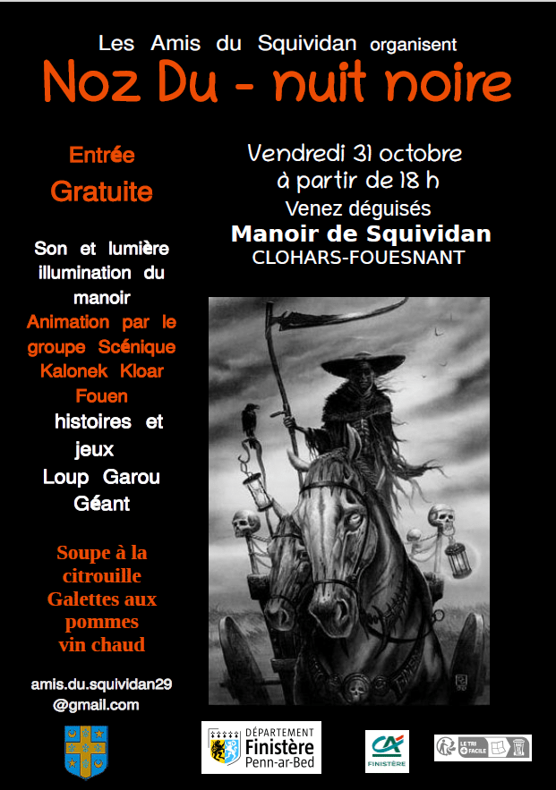Cette année, les amis de Squividan se renouvellent et vous proposent une soirée bretonne, histoire et rituels modernes autour d’une fête païenne. Le manoir sera à nouveau illuminé, dans une ambiance mystérieuse où l’Ankou ne sera pas loin sur sa charrette.