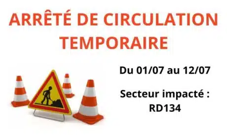 Entre le 01/07 et le 12/07 une partie de la RD134 sera fermé temporairement jour et nuit pour travaux d'entretien de la voirie. Veuillez prendre…