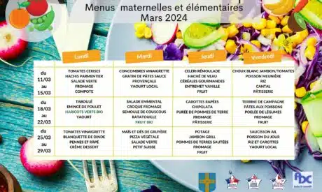 Veuillez trouver ici le menu du mois de Mars du restaurant scolaire.