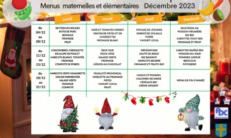Veuillez trouver ci-après le lien vers les menus de décembre : menus de décembre 2023