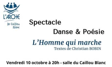 Spectacle Danse et Poésie "L'Homme qui marche" le vendredi 10 octobre à 20h, à la salle du Caillou Blanc Textes de Christian BOBIN Entrée libre