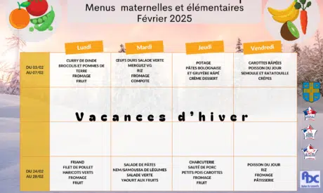 Veuillez trouver ci-après le lien vers les menus du mois de février : Menus de février