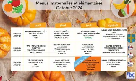Veuillez trouver les menus du mois d'octobre en suivant le lien : menus d'octobre
