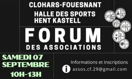 Le forum des associations de la commune de Clohars-Fouesnant aura lieu le samedi 07 Septembre de 10h à 13h à la Halle des Sports Hent-Kastell.…