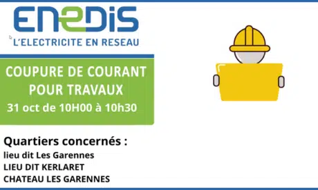 Enedis nous informe qu'il y aura une coupure de coupure de courant le 31/10/2023 de 10h à 10h30. Les quartiers concernés sont : lieu dit…