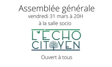 L'association l'écho-citoyen vous invite à son AG, le vendredi 31 mars 2023, 20H, à la salle socioculturelle de Clohars-Fouesnant. Au programme : 1. Bilan moral 2.…