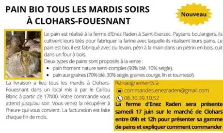 Contre-temps : La ferme d'Enez Raden (ferme située à St Evarzec) ne sera pas présente samedi 17 juin sur le marché de Clohars entre 09h…