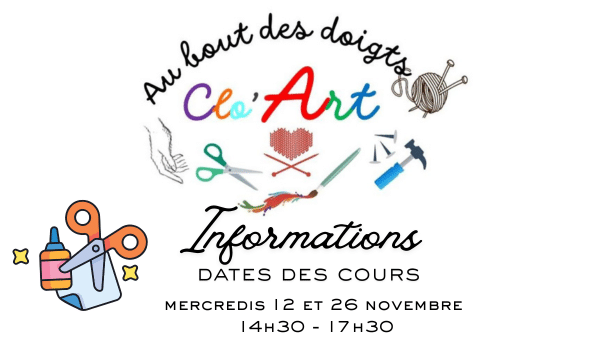 L’Association de loisirs créatifs : Clo’art au bout des doigts » vous informe des dates de ses ateliers en novembre :