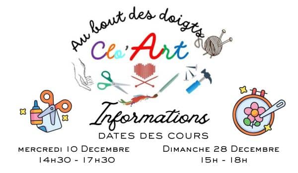 L’Association de loisirs créatifs : Clo’art au bout des doigts » vous informe des dates de ses ateliers en décembre :